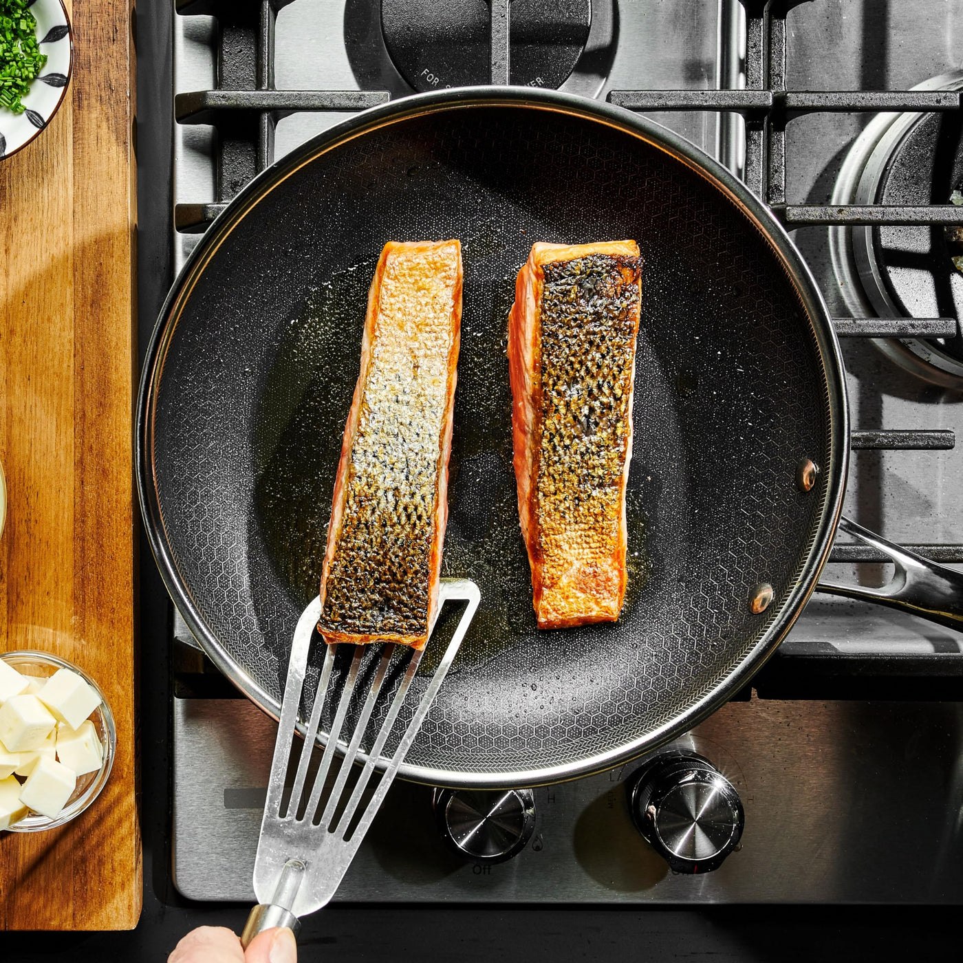 HexClad Hybrid Nonstick 10-Inch Frying Pan with Tempered Glass Lid, Stay-Cool Handle, Dishwasher-Friendly, Oven-Safe Up to 900°F, Induction Ready, Compatible with All Cooktops Sale