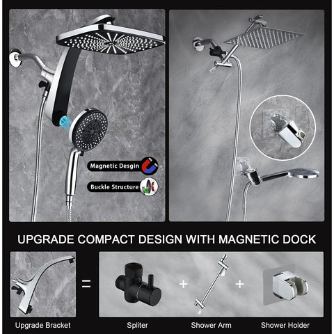 - Upgrade technology ensure amazing showering experience, compare with original magnetic shower head, our rain shower head adopts strong metal magnetic combin buckle structure which can hold your handheld shower head firmly (Patent NO:US011857983B2 & US12269049B1)