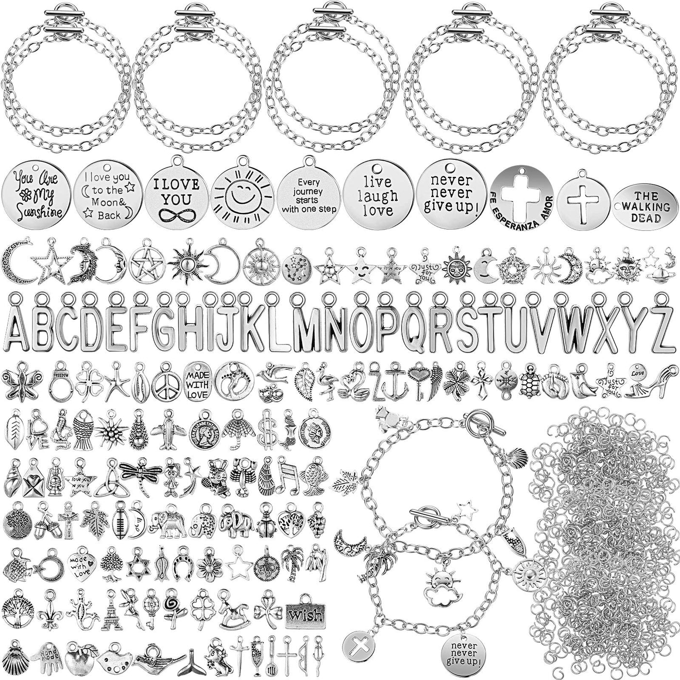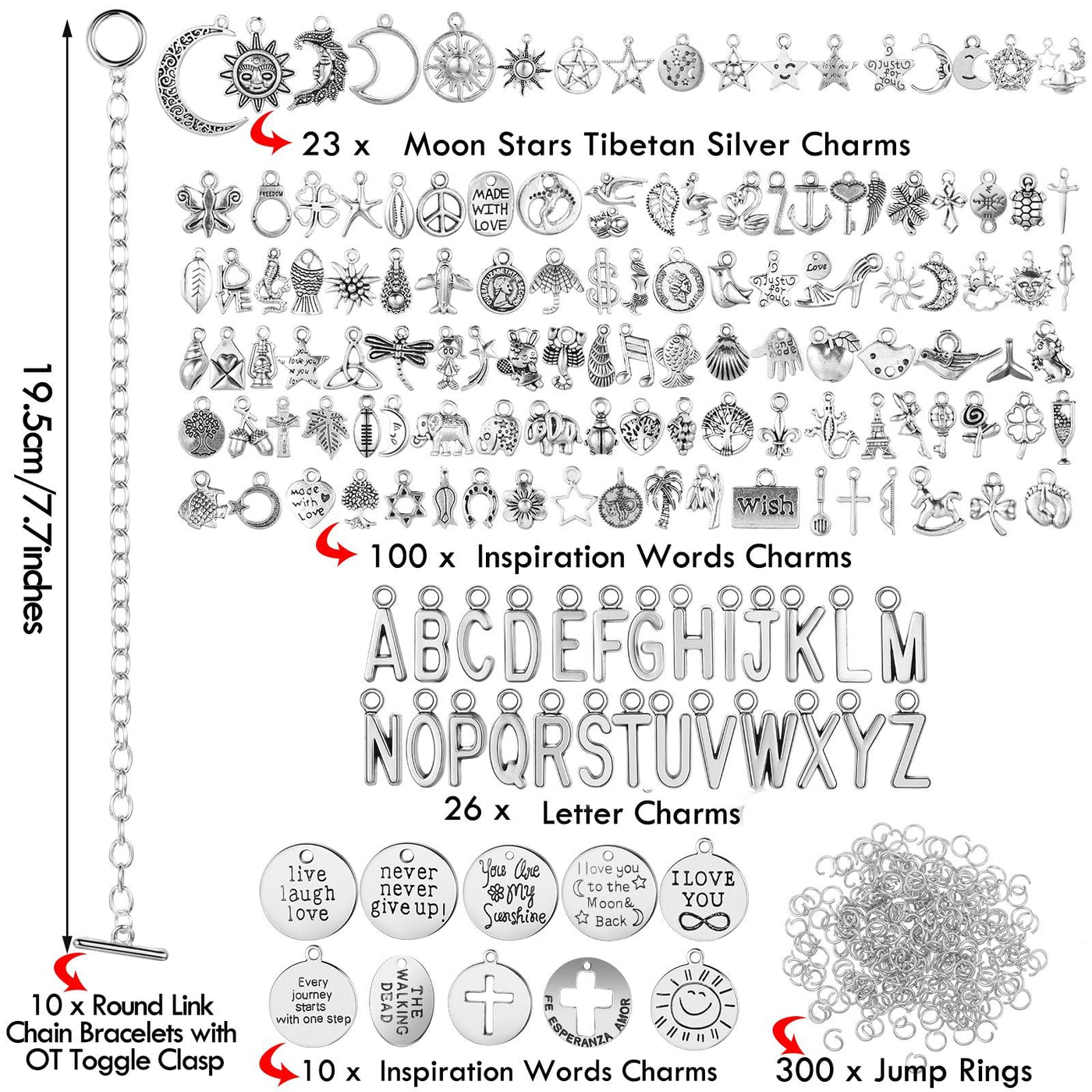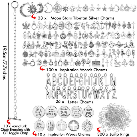 - Rich combination: you will receive 10 pieces round link chain bracelets with OT toggle clasp,159 pieces moon stars Tibetan silver charms and 300 pieces open jump rings, you can choose and match your favorite pendants to create your jewelry crafts