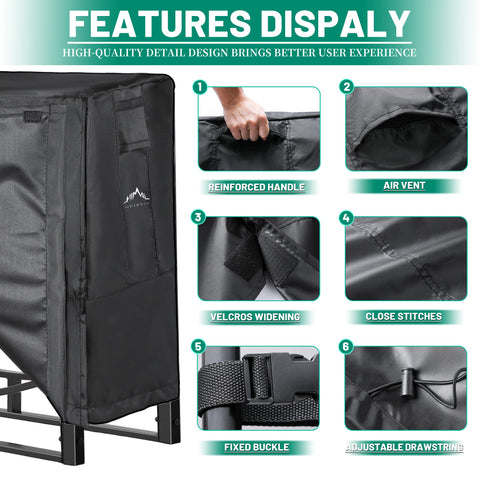 - [WATERPROOF DESIGN] Thick durable PU Coating with double-stitched seams can keep your firewood completely dry, 100% waterproof firewood cover