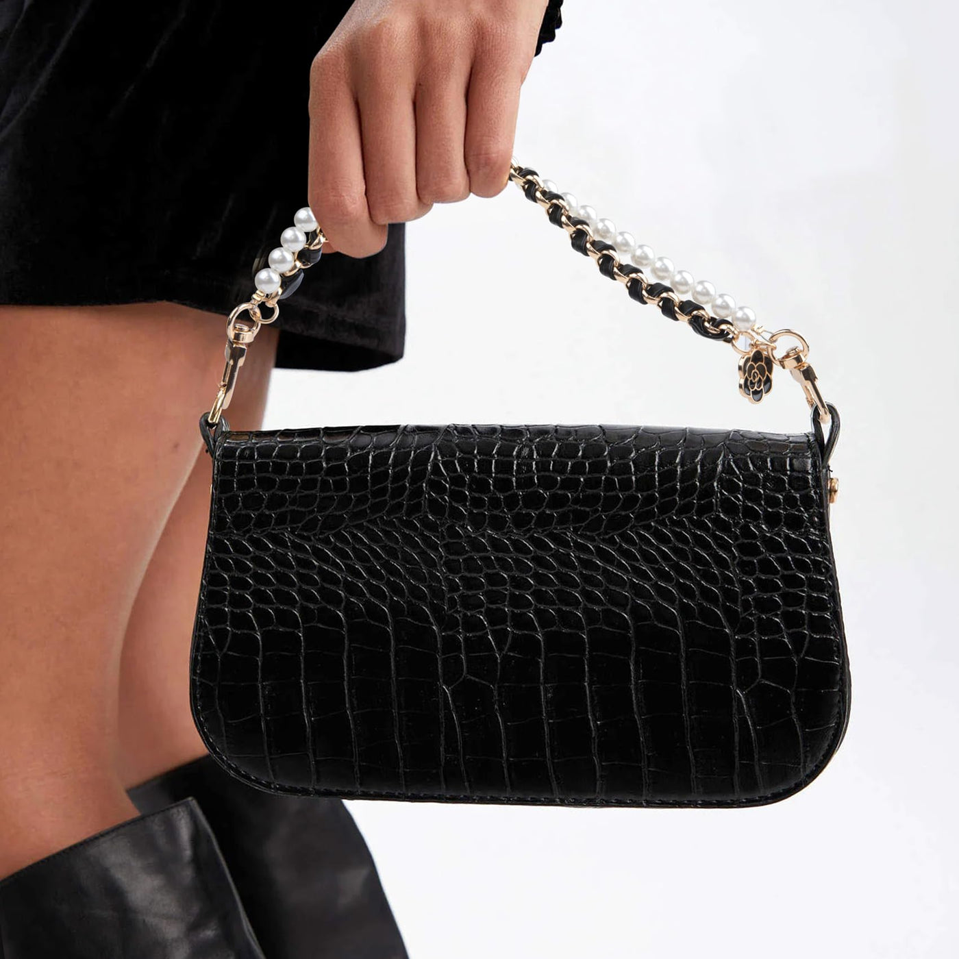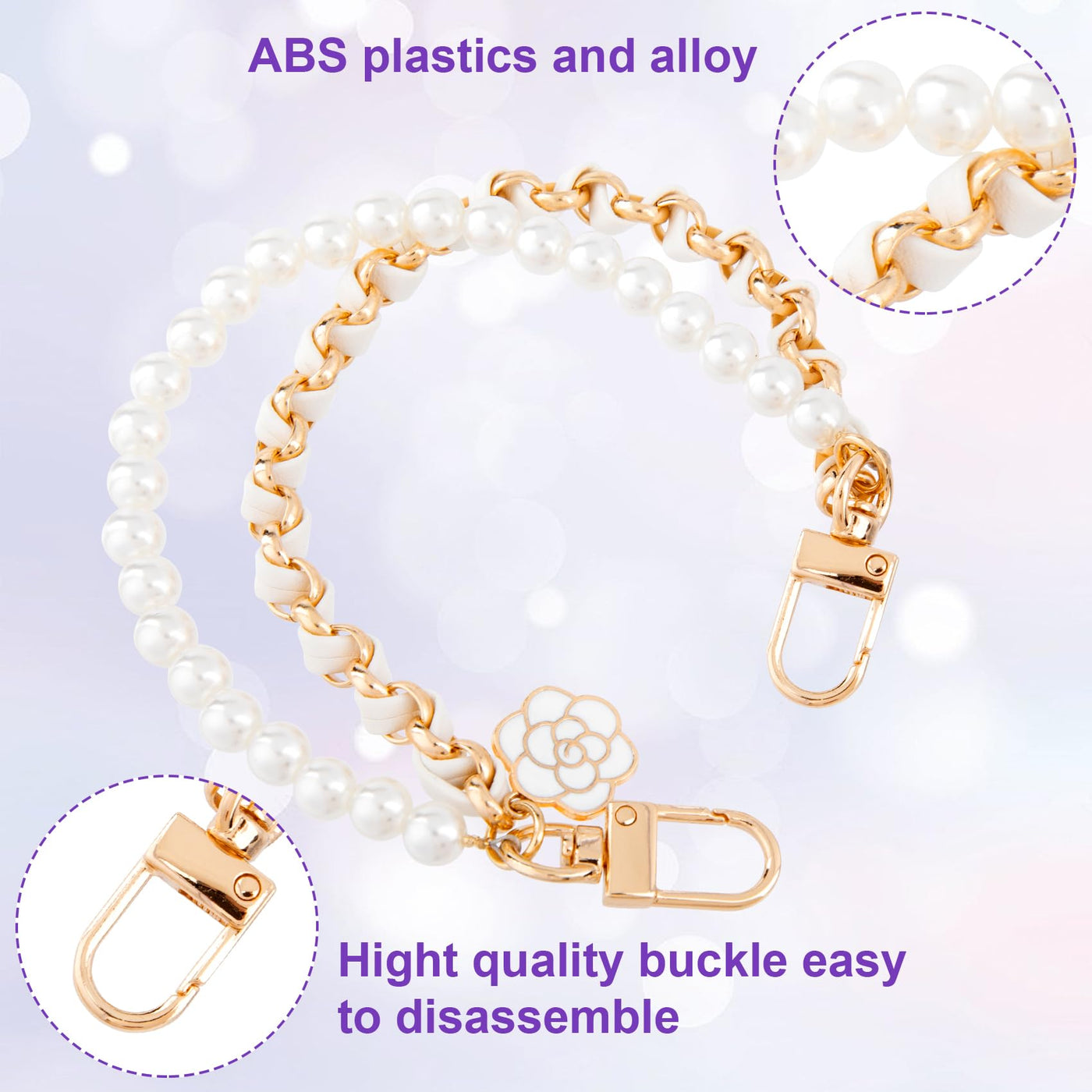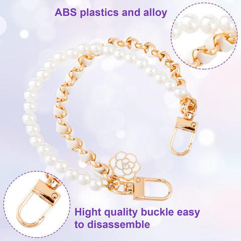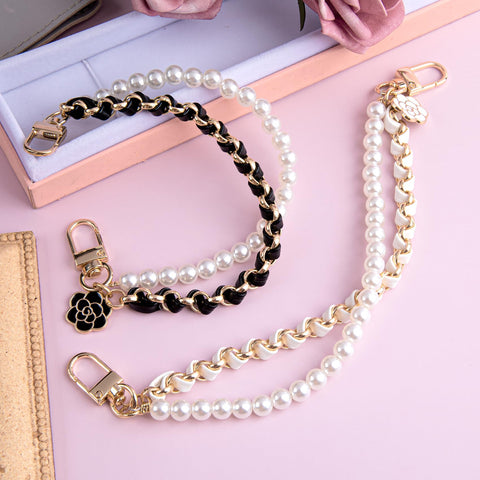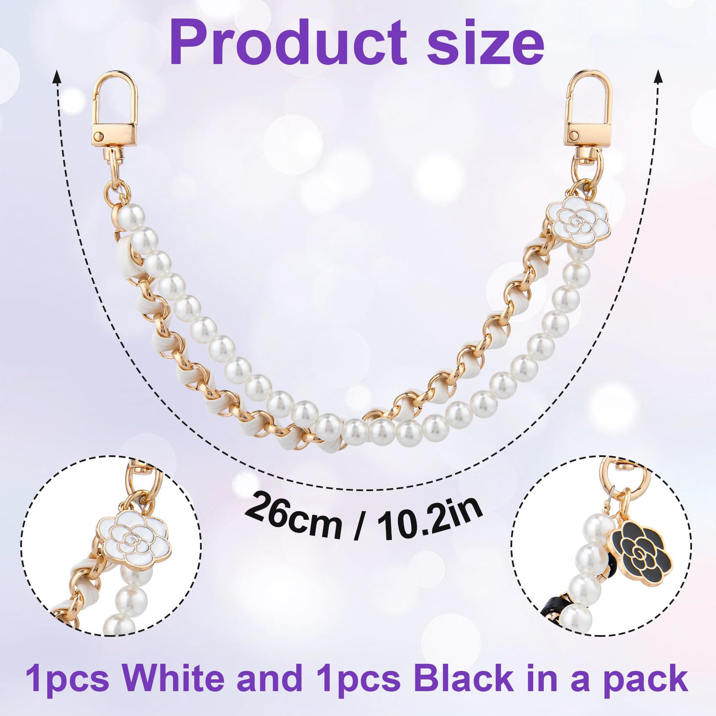 HINZIC 2Pcs Pearl Purse Chain Extender 10inch Black Gold Handbag Straps Cute Flower Metal Shoulder Crossbody Bags Short Handle Replacement Charms Accessories for Women Sale