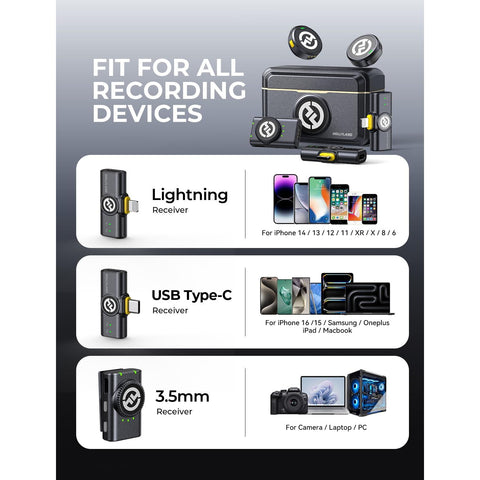 - [Instant Pairing Upon Unboxing] LARK M2 microphone system is pre-paired at the factory, so you won't have to deal with any complex setup procedures. The TX and RX will automatically pair with each other, allowing you to start recording right away. You can easily adjust volume levels on the RX using the intuitive knob. Three LEDs clearly display volume levels, showing the current status.