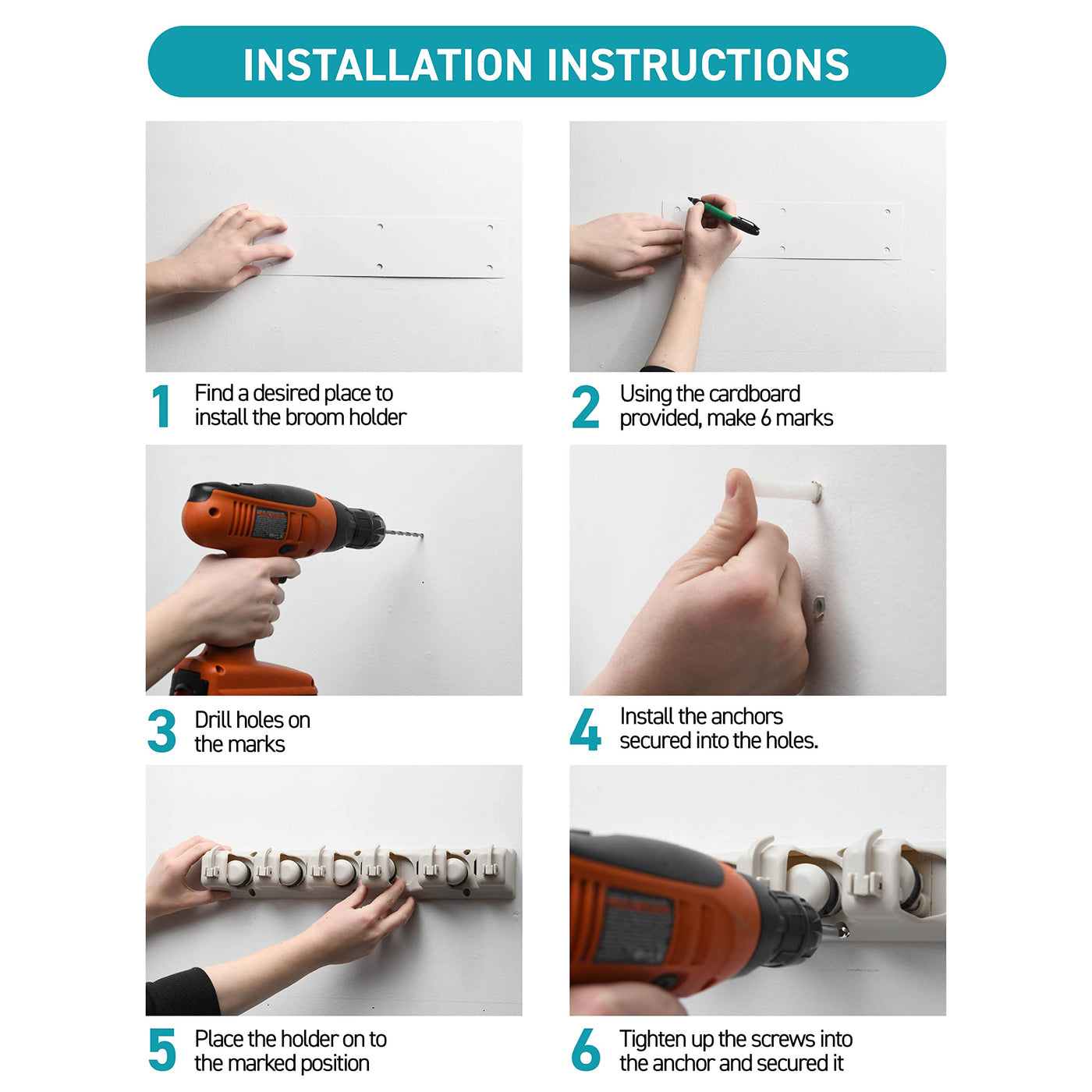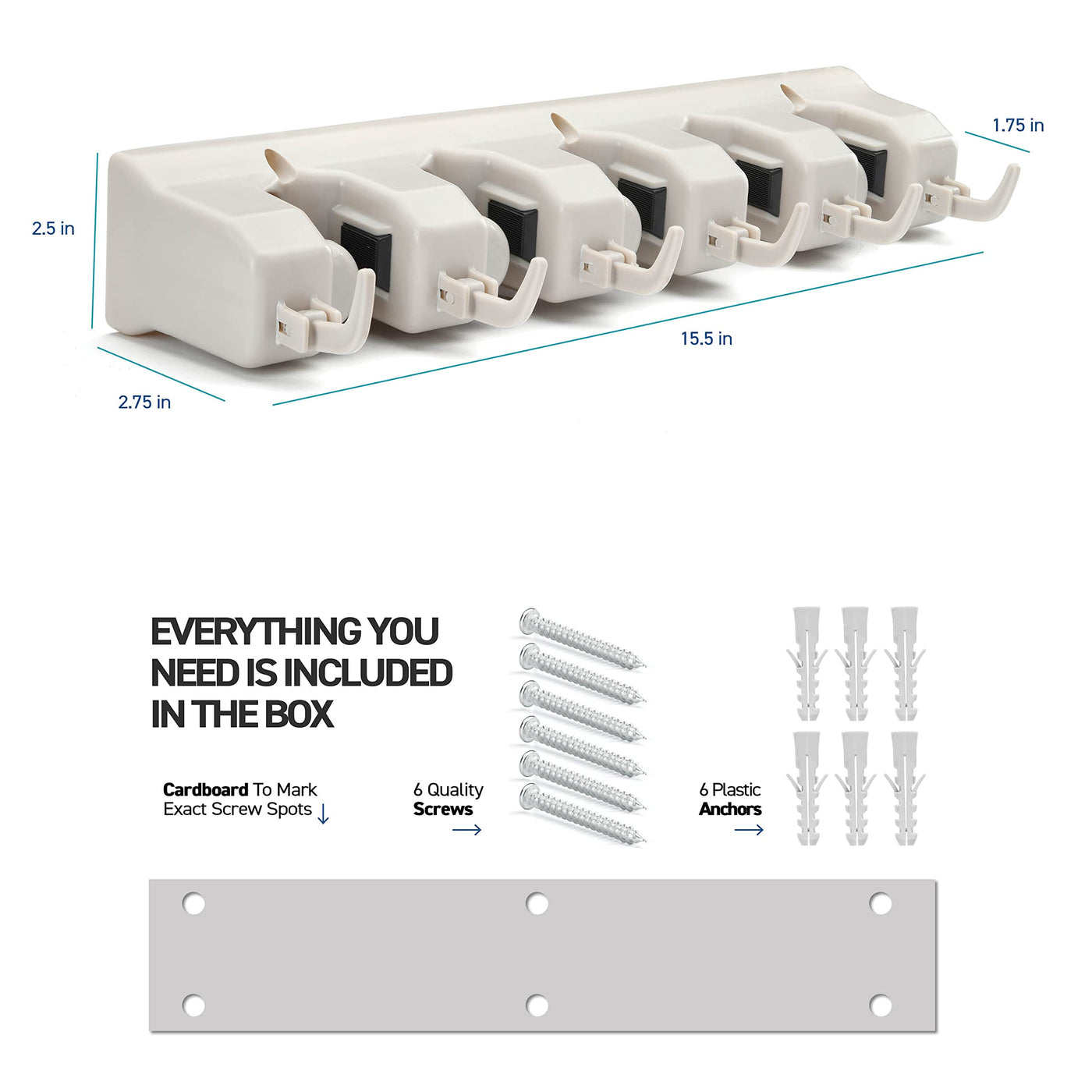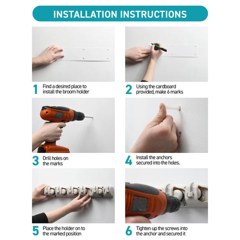 - Easy To Mount Garage Storage Solutions - Included with the garage organizers are screws, anchors, a drilling template, and a guide–everything you'll need to mount this mop hanger indoors or outdoors!