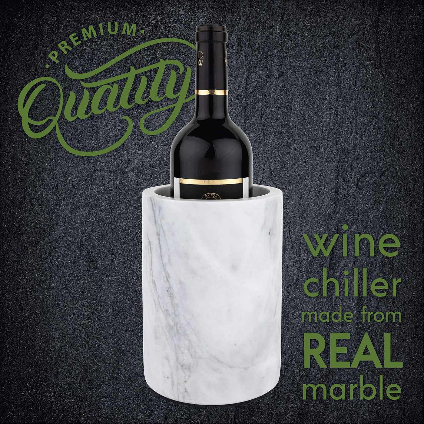 - MARBLE WINE CHILLER- Made of 100% smooth, solid, and durable marble, this wine cooler bucket will add a touch of elegance to any event! This wine bottle chiller has been designed to hold most wine and champagne bottles, but feel free to use it for any other beverages just as a bottle of water or juice for those hot summer days!