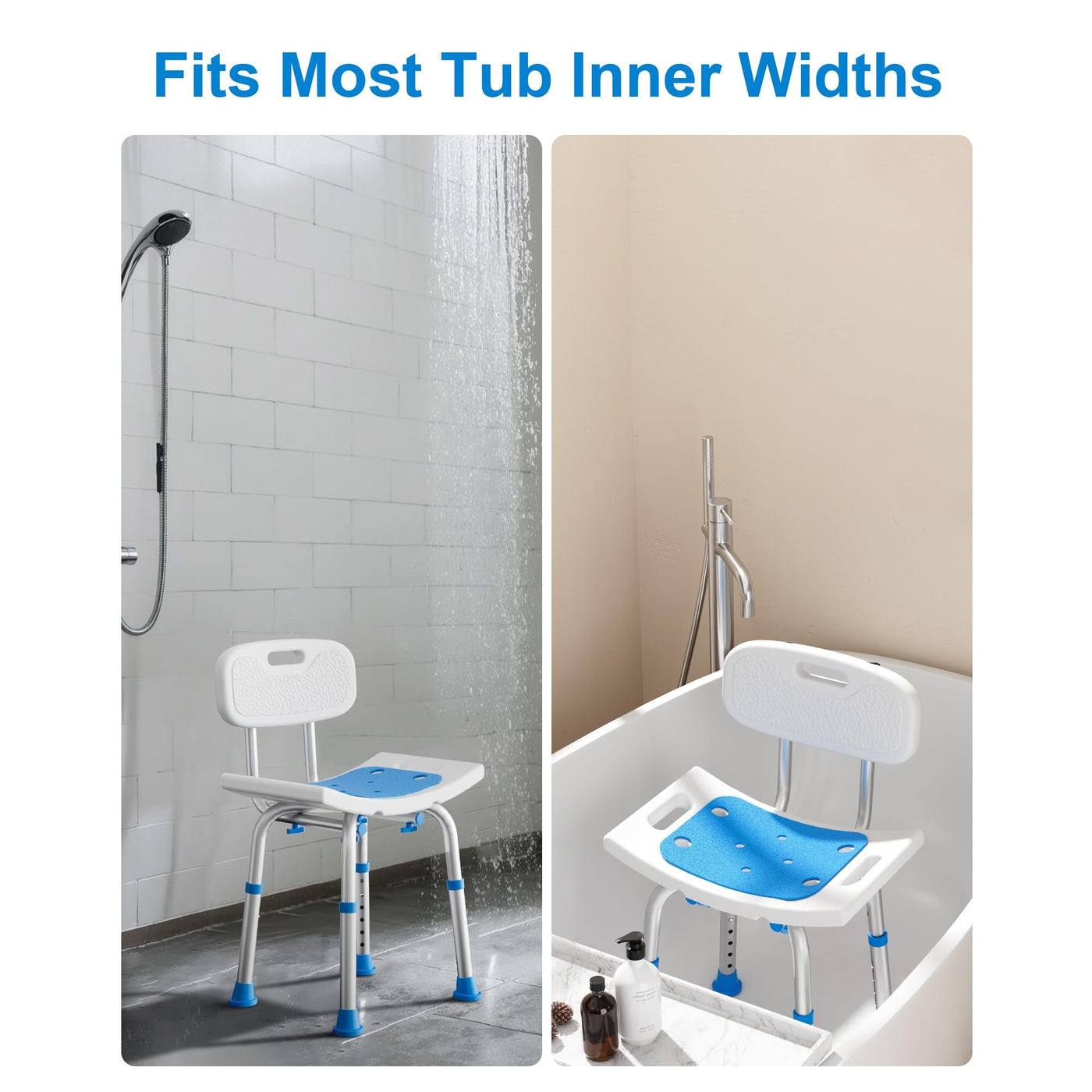 - Non-Slip Rubber Feet: Wide, skid-resistant feet provide secure attachment to tub or shower floors, ensuring safety for elderly adults during bath time. Stainless steel washers-reinforced feet stable and never worry about rust stains