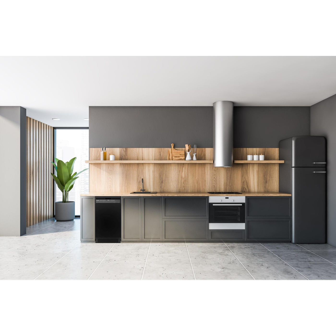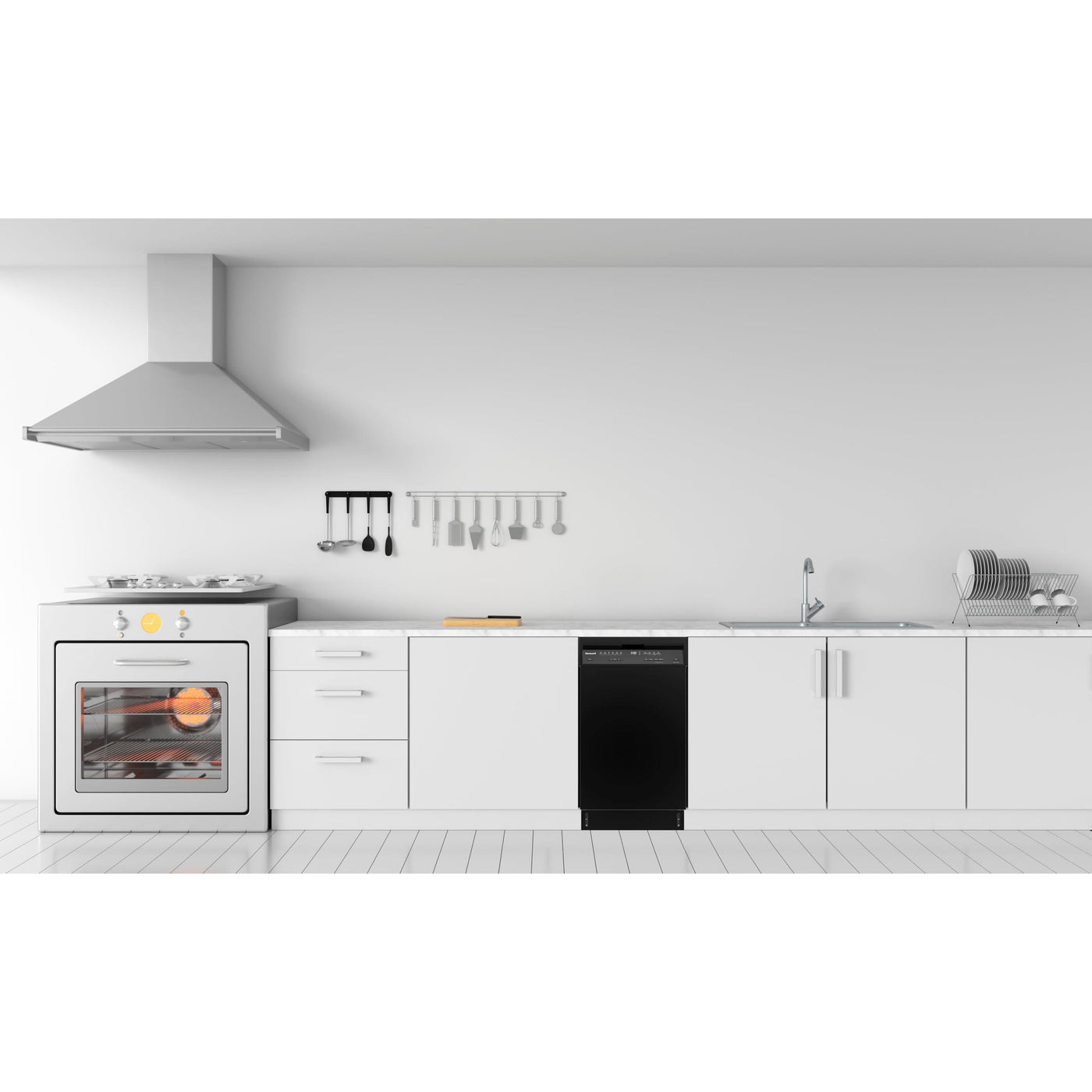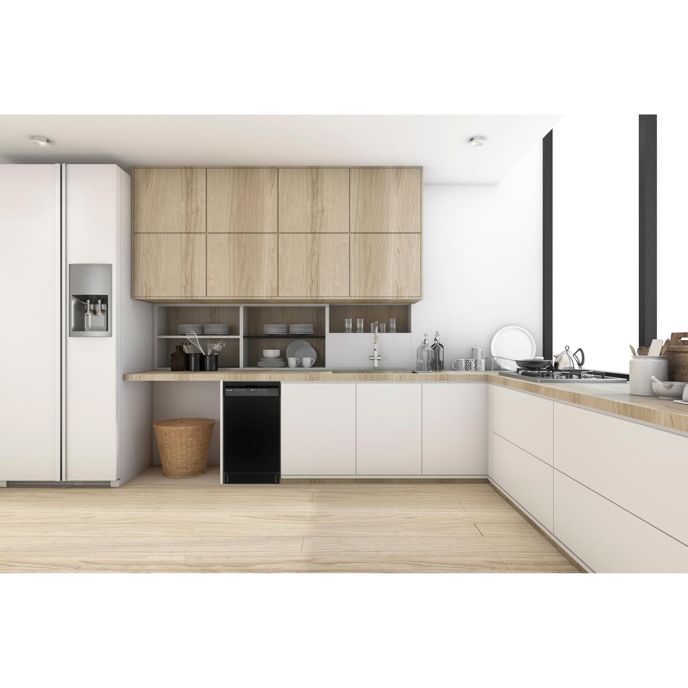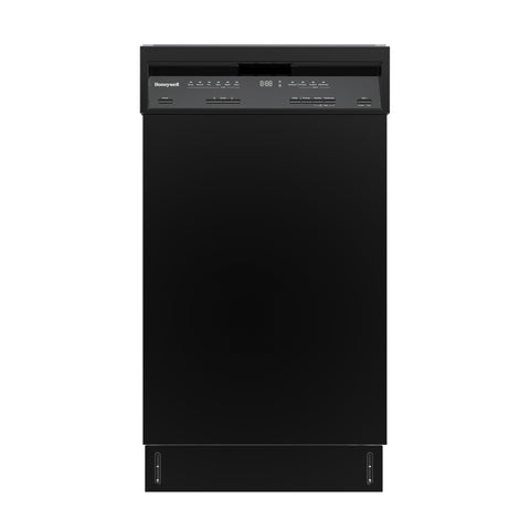 Details: The Honeywell 18 inch dishwasher is compact in size allowing for more cabinet space in the kitchen. The racks are suitable to fit 14 place settings of dishes. There are 2 racks with a removable cutlery basket. There are 6 washing programs to choose from- pots & pans, normal wash, china, quick wash, rinse only, and energy saver. The tub is made of stainless steel for better efficiency performance. This uses low energy consumption according to Energy Star standards. There is up to 24 hour delay start for you added convenience. The unit dimensions are 22.6"D x 18"W x 32.4"H. This has UL and Energy Star certification.