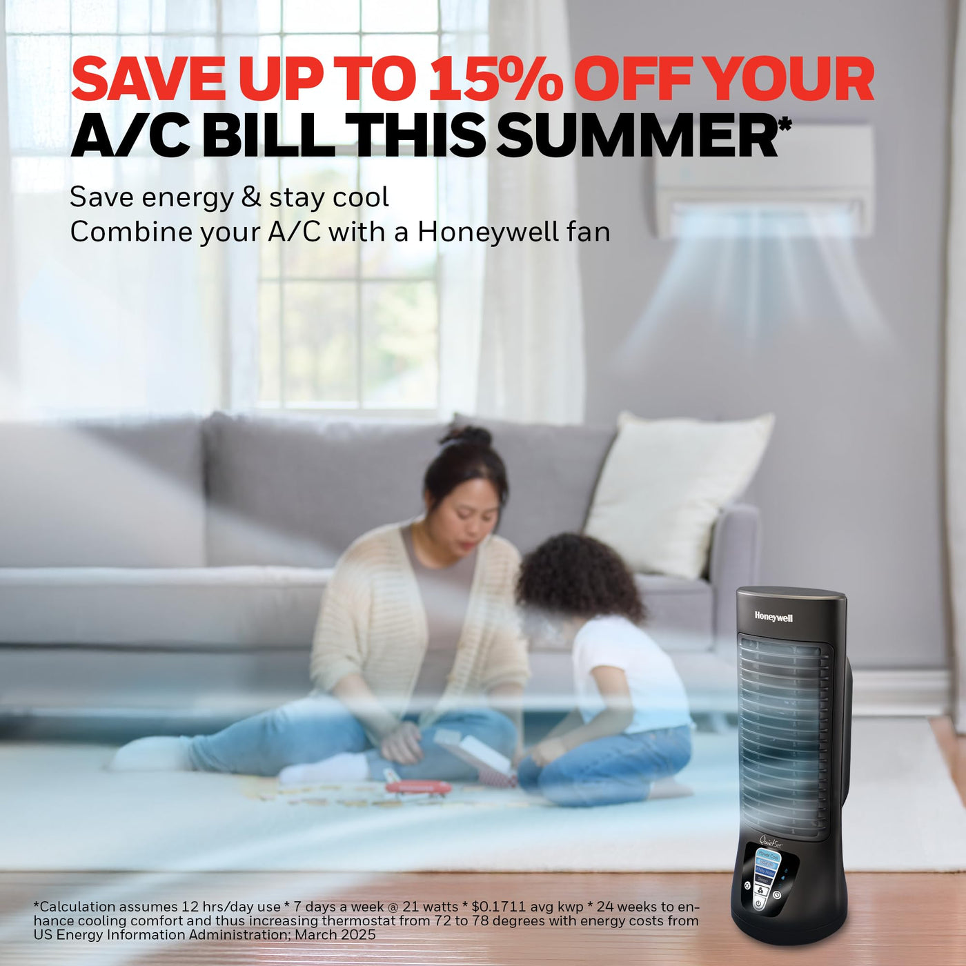 - Cooling fan savings: Indoor fans for homes can save up to 15% off your a/c bill this summer. Combine your Honeywell Fans with your air conditioner.** Set your a/c at a higher temperature but still feel cool & comfortable