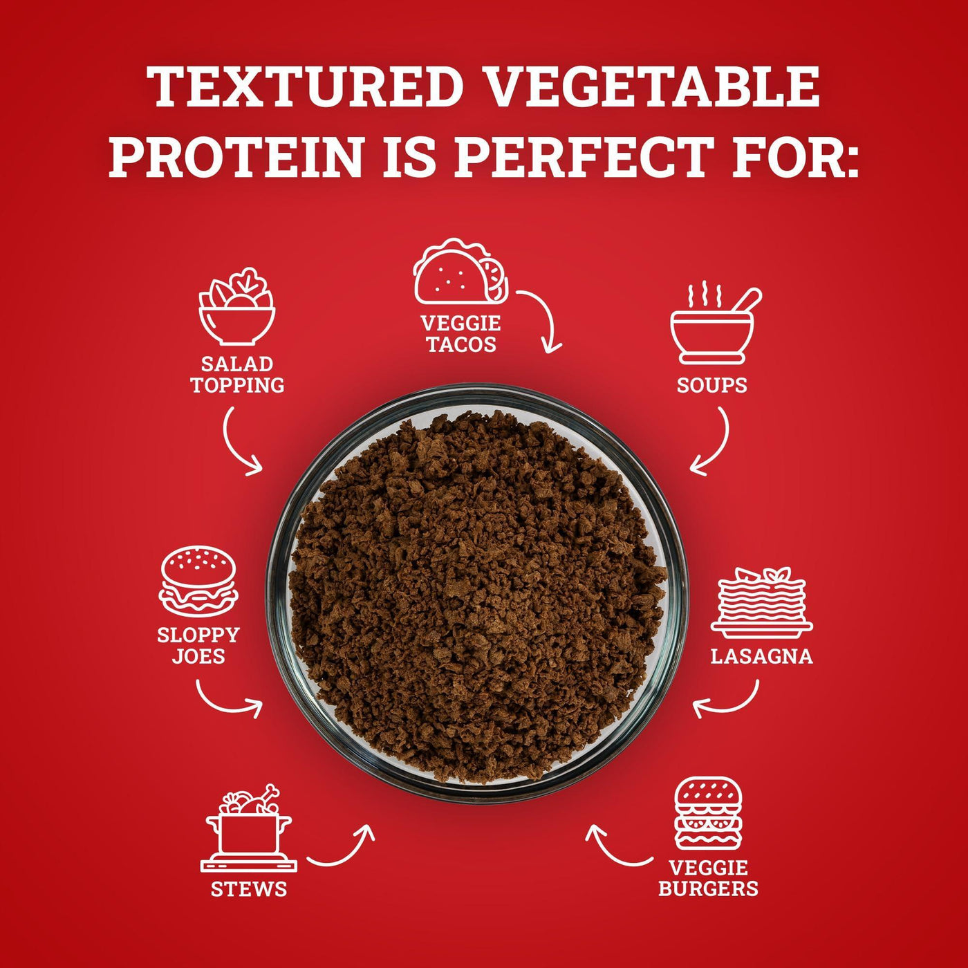 - Textured Vegetable Protein can also be added directly to soup, chili, stew, or bolognese sauces without rehydrating. You may need to add more broth or water to these recipes, as Textured Vegetable Protein will absorb liquid as it cooks.