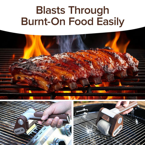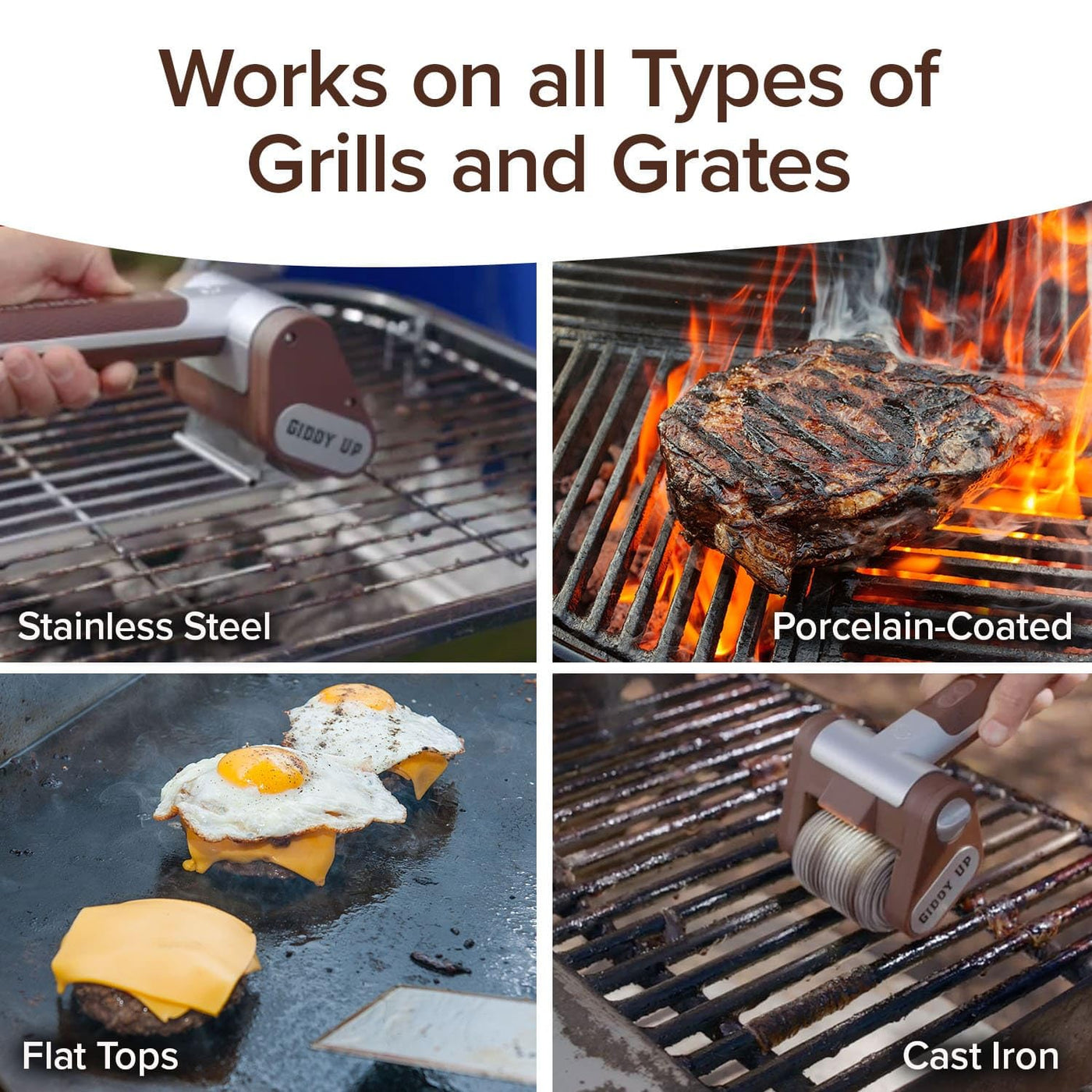 HorsePower Giddy Up Grill Cleaner AS-SEEN-ON-TV! – Cordless, Rechargeable BBQ Tool with 350 RPM Stainless Roller, LED Light – Patents Pending – From BulbHead, a Family-Owned American Brand