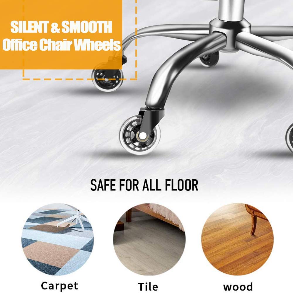 - Safe for all floors, no chair mat needed, these office chair caster wheels are encased with a high-quality, extra-thick non-marking soft polyurethane layer to stop scratch or leave marks on any surface even if there is no carpet or chair mat. Widely used for the office floors, wood, hardwood, parquet, laminate, vinyl, tile, and carpet floors
