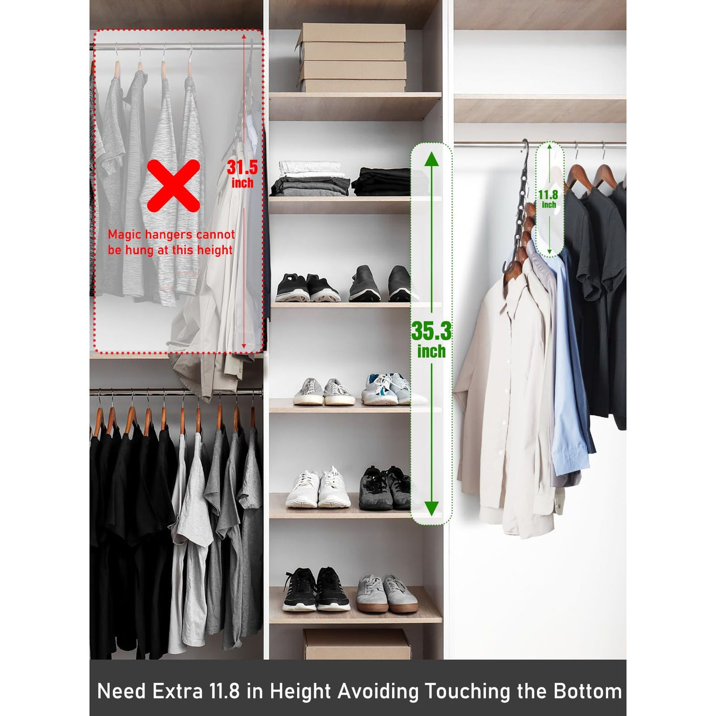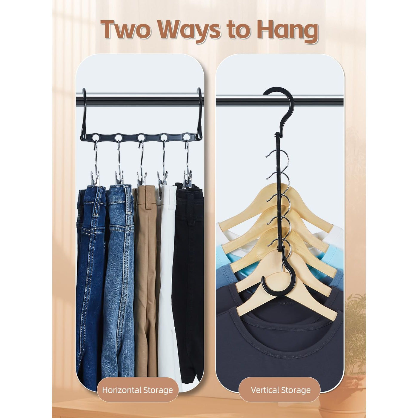 - Newly Designed Easy To Use Magic Hangers - Each clothing hanger has 5 holes slots to prevent clothes from slipping and falling. Our cascading hangers also feature swiveling 360 degree rotating hooks with a wide diameter to fit a large range of closet rack rods.