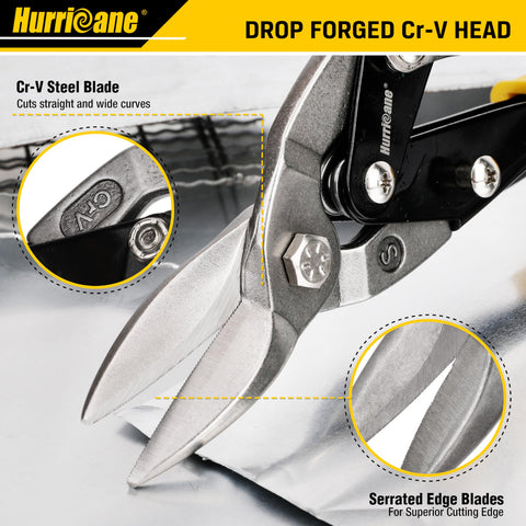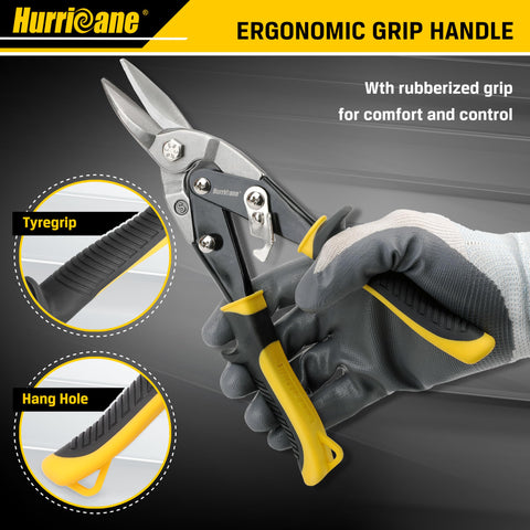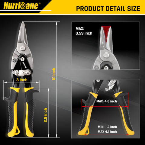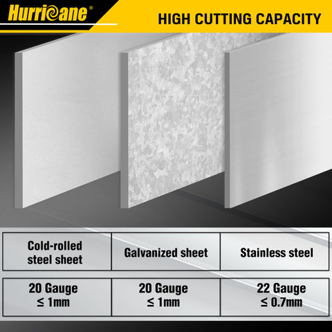 - Straight and Gentle Curve Cutting Application: Designed for cutting straight lines and wide, gentle curves in materials such as sheet metal, aluminum, copper, plastic, and thick cardboard. Commonly used for HVAC, roofing, and DIY projects.