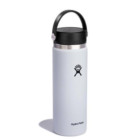 - 20 OZ WHITE BOTTLE: Fill and refill with the Hydro Flask Wide Mouth insulated water bottle with leakproof cap. With a comfortable, flexible handle, the bottle is easy to grab and take anywhere. Double-wall insulation keeps drinks cold up to 24 hours and hot for 12 for ideal refreshment.