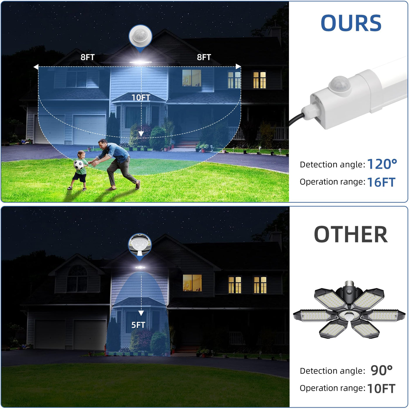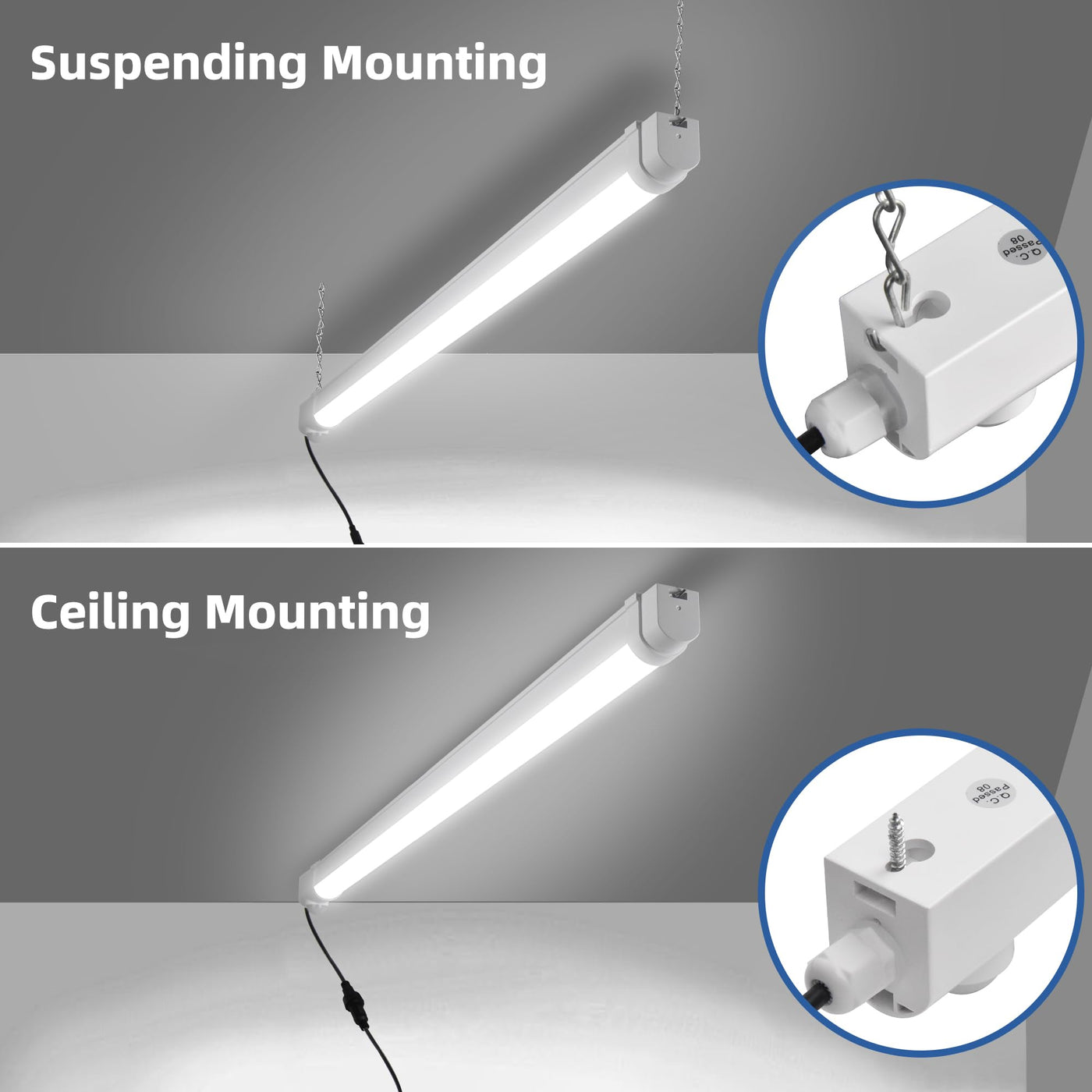 hykolity Solar Powered Shop Light with Motion Sensor, 3FT 17W (100-Watt Equivalent),Integrated LED IP65 Waterproof Outdoor Motion Sensor Shop Light for Garage, Barn, House - 2 Pack