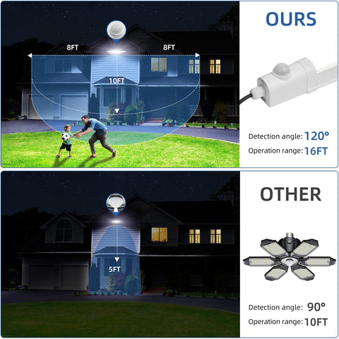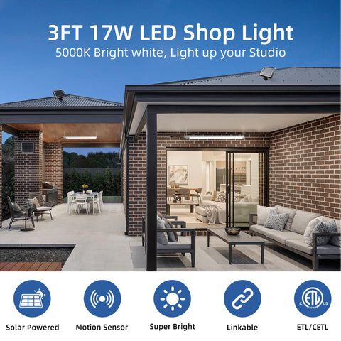 hykolity Solar Powered Shop Light with Motion Sensor, 3FT 17W (100-Watt Equivalent),Integrated LED IP65 Waterproof Outdoor Motion Sensor Shop Light for Garage, Barn, House - 2 Pack Sale