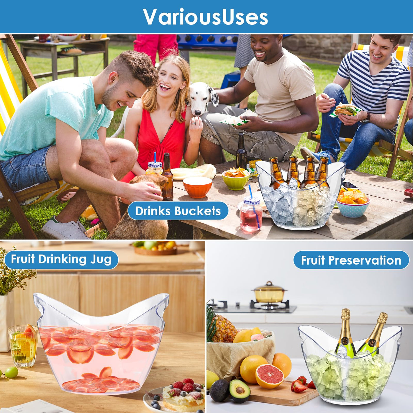- 【Wide Range of Uses】Suitable for family, house, bar, cafe, hotel, restaurant, party, buffet in outdoor or indoor activites use. This spacious, lightweight ice bucket sits nicely on tabletops or a picnic blanket.