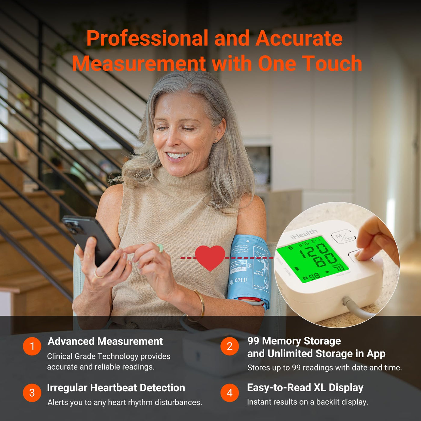 - Easy Management: Manage and track up to 99 readings on your blood pressure monitor and unlimited readings on your smartphone with iHealth's free iOS and Android applications ( iOS 12.0 or later. Android 9.0 or later.Requires Bluetooth 4.0.and up).