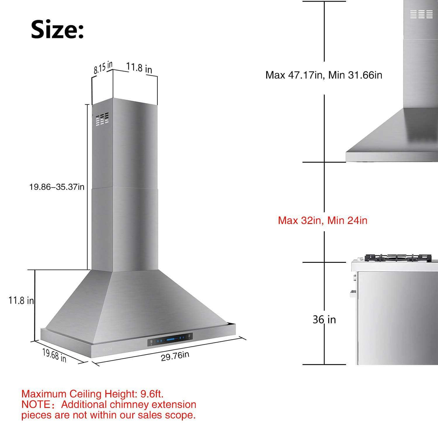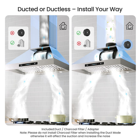 - 【Modern Design】: IKTCH Wall Mount Range Hood is made from stainless steel, which has an elegant appearance and comes with remote control. The novel gesture sensing function gives you a whole new experience.