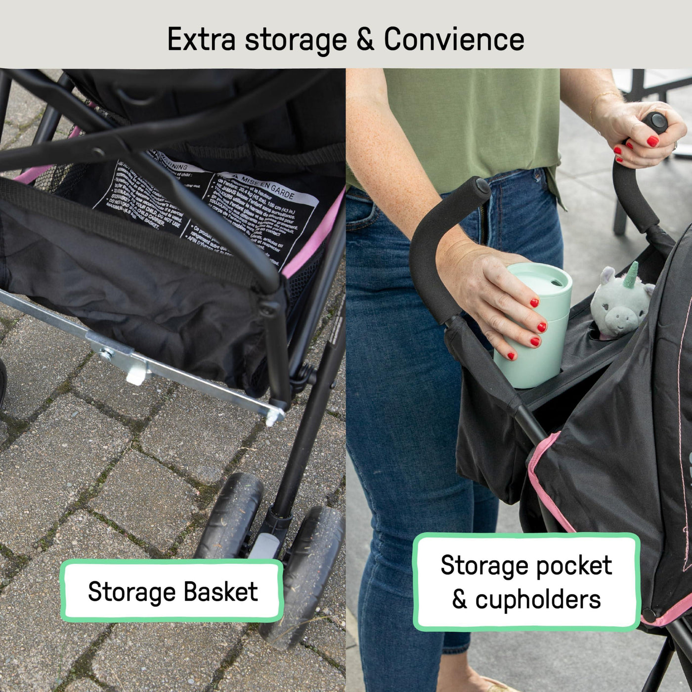 Ingenuity 3D Mini Convenience Stroller – Lightweight Stroller with Compact Fold, Multi-Position Recline, Canopy with Pop Out Sun Visor and More – Umbrella Stroller for Travel, Pink