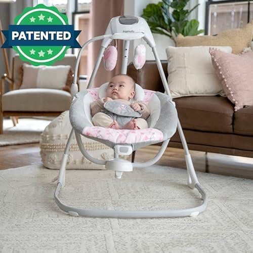 - The Ingenuity SimpleComfort Compact Soothing Swing rotates 180 degrees & swings 3 directions; Swing your baby in comfort with 6 speeds, 8 melodies, 3 nature sounds, & white noise
