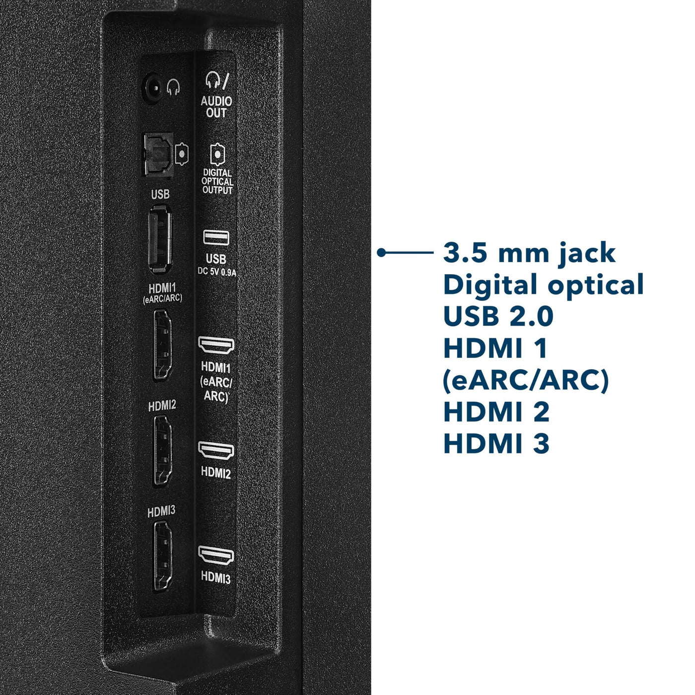 - Versatile connections: Connect your home theater components such as a Blu-ray player, game console, speakers, cable/antenna and more. TV connections include 3 HDMI ports, composite (AV) jacks, digital optical output, USB port, headphone jack, coaxial jack, Ethernet port and Wi-Fi technology.