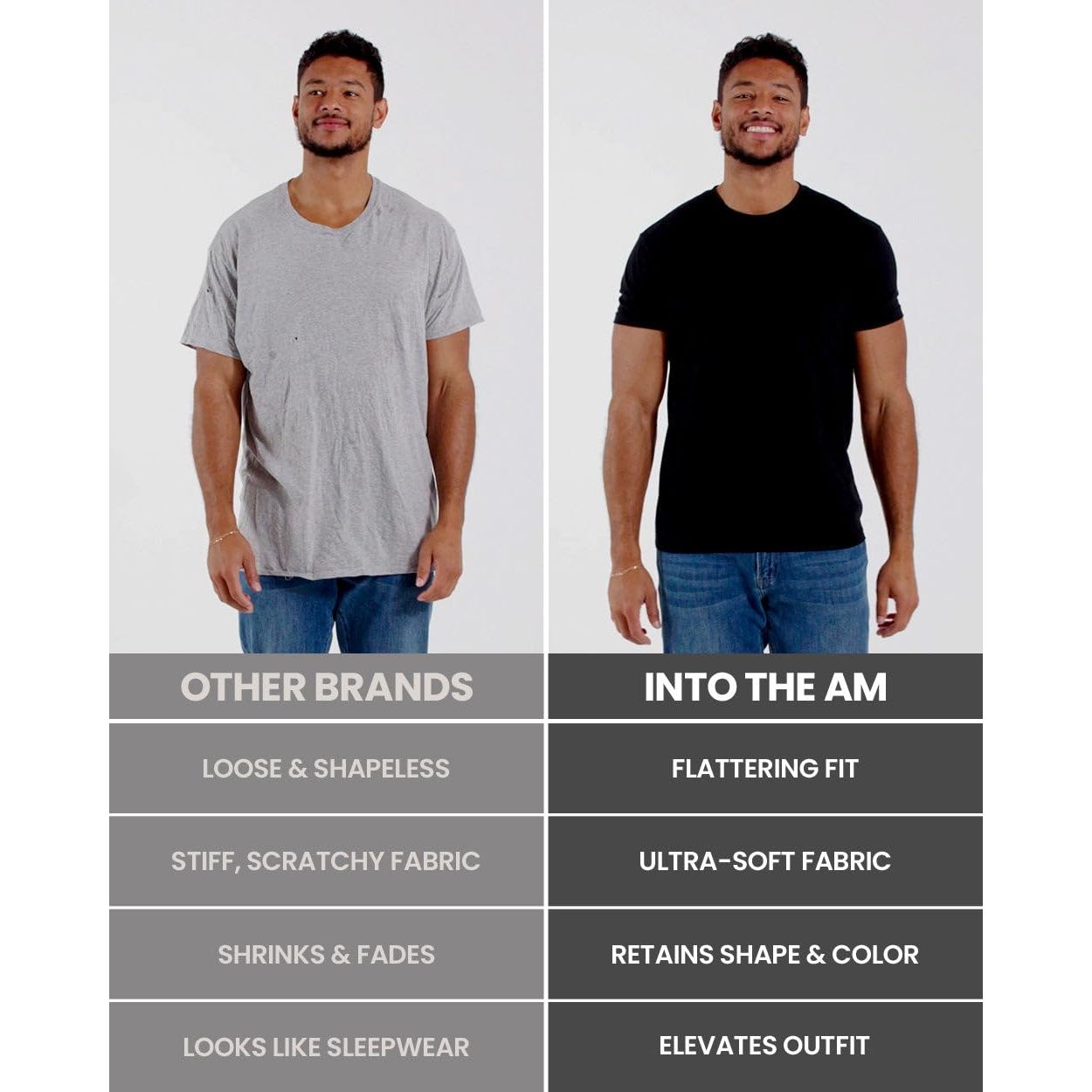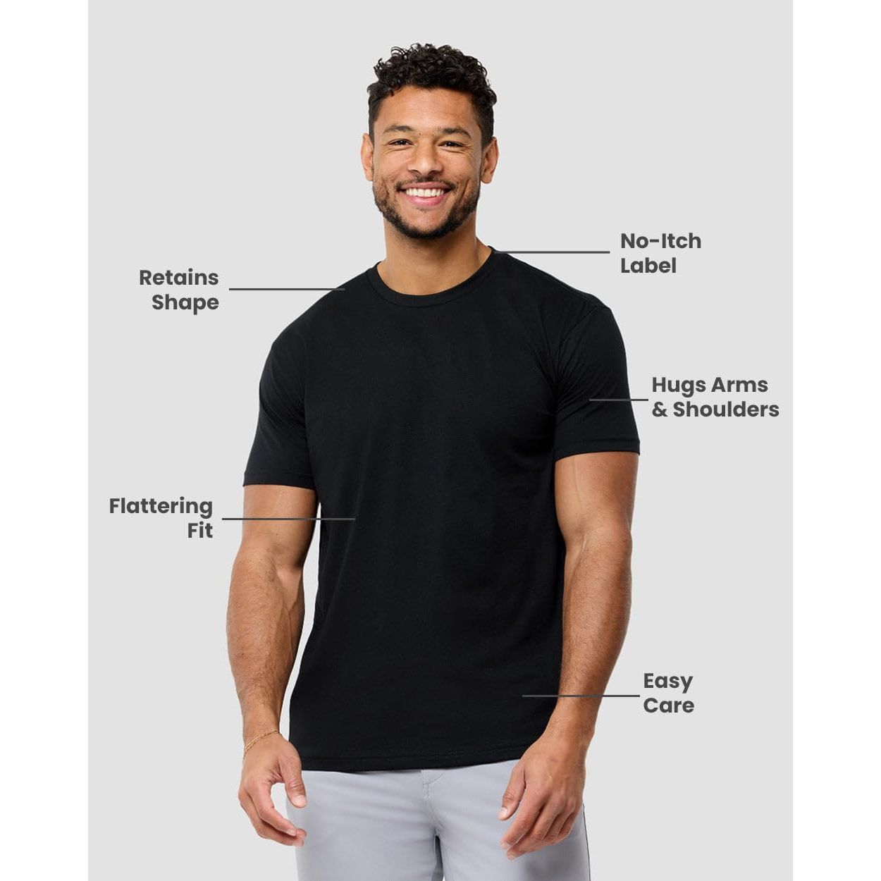 - ATHLETIC FIT MENS T-SHIRTS: Our signature black t shirts for men feature a modern cut. Fitted through the chest and shoulders with a relaxed drape, this mens black tshirt offers a stylish silhouette that flatters