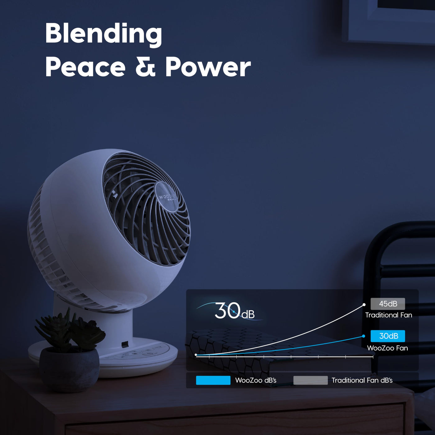 - QUIET - Emitting only 30 dB of noise, the WOOZOO air circulator is perfect for when you need a breeze while trying to sleep or study, or just want to be cool and relax without any loud noises or distractions.