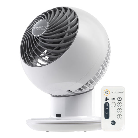 Details: Maximize air flow in your house, office, or dorm with this WOOZOO remote controlled fan. The powerful yet compact unit comes with a remote to let you control your desired settings from across the room. Five speed settings let you adjust air flow to your desired strength, and the optional natural breeze setting imitates the feeling of the outdoors. The fan oscillates left and right to reach the whole room and features six vertical manual tilt settings. Enjoy extra-quiet cooling on the circulator’s virtually silent 'low' setting for when you want to study, sleep, or relax without any noise distractions, and use of the optional 1, 2, and 4 hour auto-off timer settings to save energy. The desktop fan provides up to 353 ft² area coverage, and the 70 inch cord makes it easy to reach the nearest open outlet.