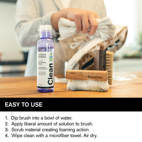 - EASY TO USE: Our deep cleaning and conditioning footwear cleaner safely delivers a powerful, yet gentle clean for just about anything. After cleaning, wipe dry with a microfiber towel to avoid oversaturating and for easy clean-up (microfiber towel sold separately)