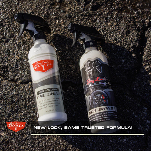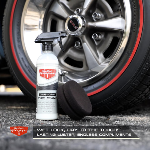 Jay Leno's Garage Tire Shine Delivers long-lasting High Gloss with a Deep Black Wet Look Glow. This Tire Dressing Spray and Car Tire Shine Work as Auto Detailing Care for Wheels and Tires – 16 oz.
