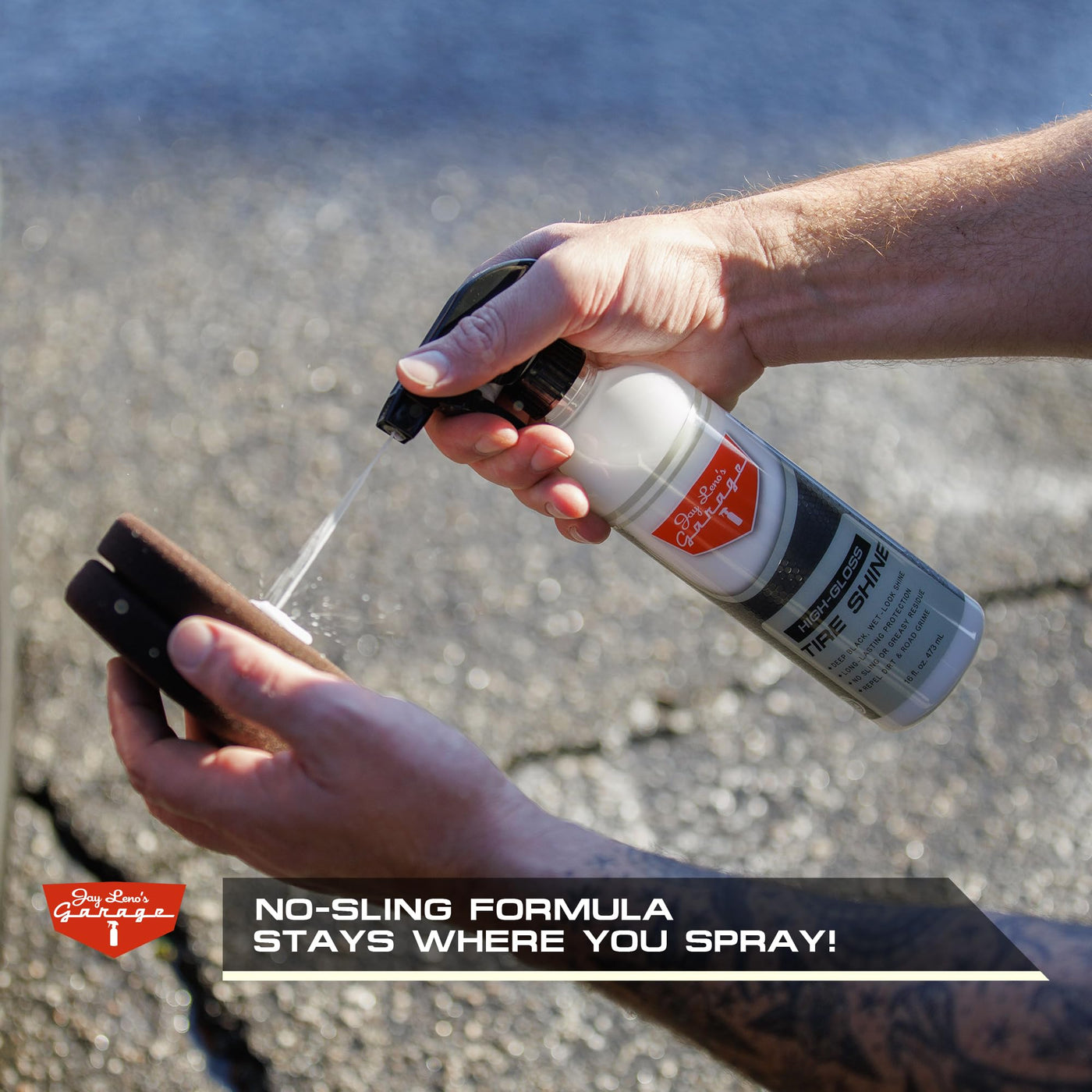 Jay Leno's Garage Tire Shine Delivers long-lasting High Gloss with a Deep Black Wet Look Glow. This Tire Dressing Spray and Car Tire Shine Work as Auto Detailing Care for Wheels and Tires – 16 oz. Sale