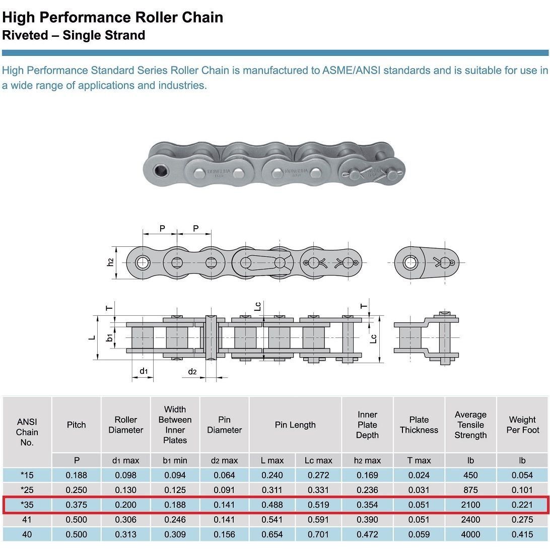 Jeremywell #35 Roller Chain 10 Feet (319 Links) + 2 Master Links for Go Karts, Mini Bikes, Motorcycles, Dirt Bike and Industrial Machinery Sale