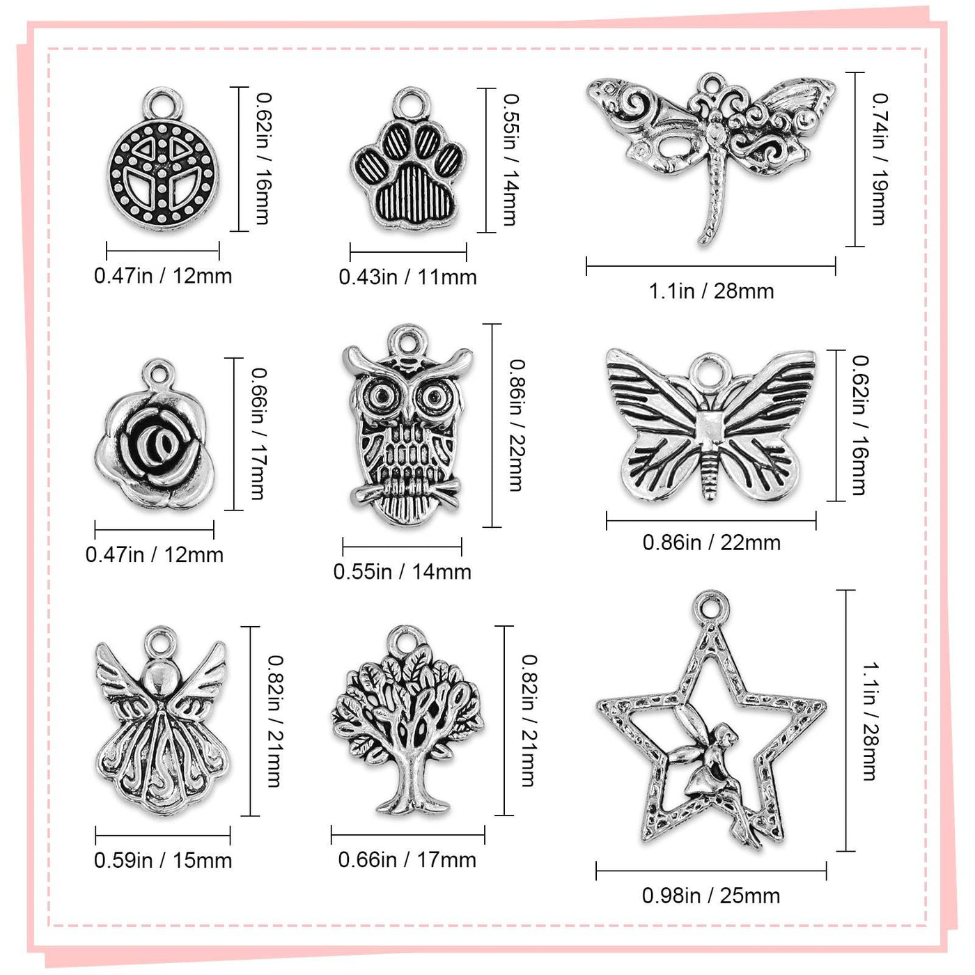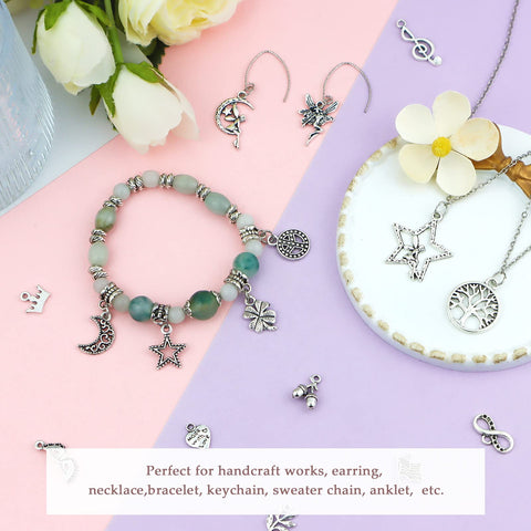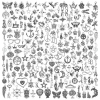 JIALEEY 200 PCS Wholesale Bulk Lots Jewelry Making Charms Mixed Smooth Tibetan Silver Metal Charms Pendants DIY for Necklace Bracelet Jewelry Making and Crafting