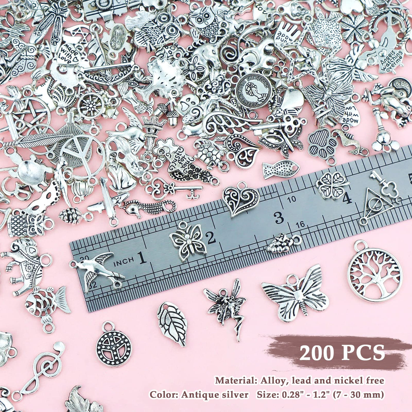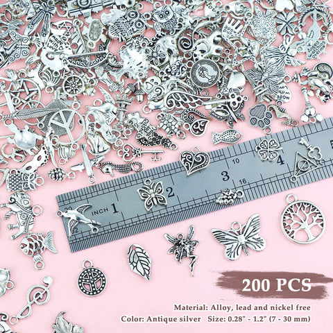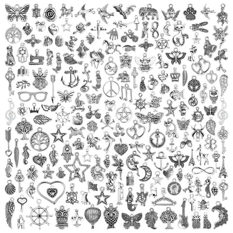 JIALEEY 200 PCS Wholesale Bulk Lots Jewelry Making Charms Mixed Smooth Tibetan Silver Metal Charms Pendants DIY for Necklace Bracelet Jewelry Making and Crafting Sale