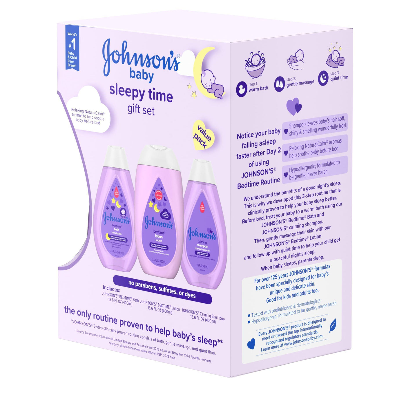 Johnson's Baby Sleepy Time Bedtime Gift Set with Relaxing NaturalCalm Aromas, Bedtime Baby Bath Shampoo, Wash & Lotion, Baby Bedtime Essentials, Hypoallergenic & Paraben-Free, 3 Items Sale
