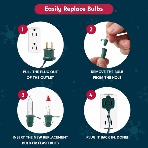 - INDEPENDENT CIRCUIT & REPLACEMENT BULBS - Enjoy a hassle-free holiday! Our lights feature an independent circuit system; if one bulb burns out, the rest stay lit. The set includes 2 spare bulbs, a replacement fuse, and 2 test flash bulbs., ensuring your display stays bright throughout the season without needing a full replacement.