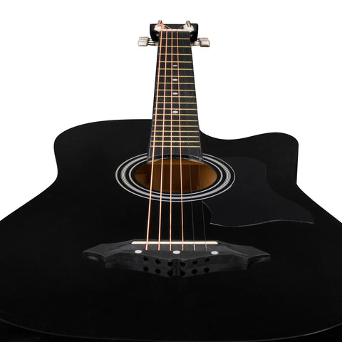 Details: Acoustic Steel String Guitar, Cutaway, Size 38”. Great looks with an innovative design to produce good quality sound.