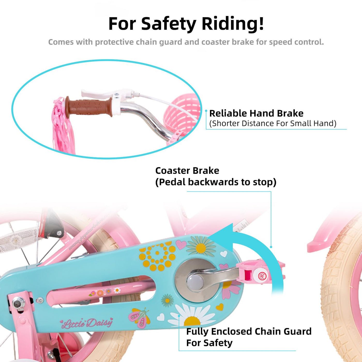 - Amazing Design and Color - JOYSTAR Little Daisy Princess 14 Inch girls bike is a beautiful and attractive bike with vibrant colors. The doll bike seat, lovely basket, and DIY decals make the journey even more enjoyable