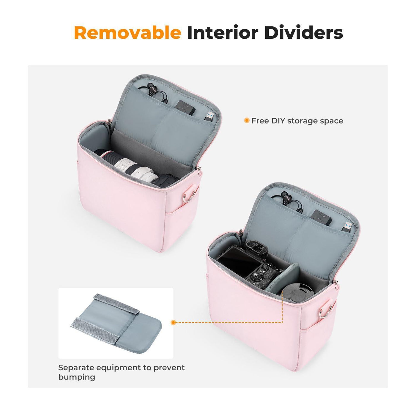 - ✔MULTI-PURPOSE:This crossbody camera bag comes with 1 removable padded divider to for personalized storage. keep camera and others separated and protected, also enable you to customize main compartment for different size of camera equipment. After removing inner dividers, it can easily convert it from a dslr camera bag into a stylish everyday shoulder bag.