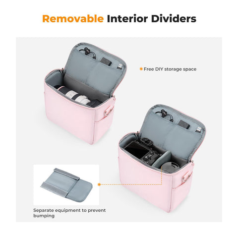 - ✔QUICK ACCESS:The Camera Shoulder Bag has wide opening with double-way metal zippers for easy access, you can quickly open the bag to take out the camera soon. So that you won't miss those wonderful moments.