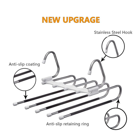 - 【Pants Hangers Space Saving 】pants organizer, pack of 2. Each pants rack can be hanged for 5 jeans/trousers/scarf at same time. Closet organizers and storage , Save at least 80% of space and keep your wardrobe clean and orderly.
