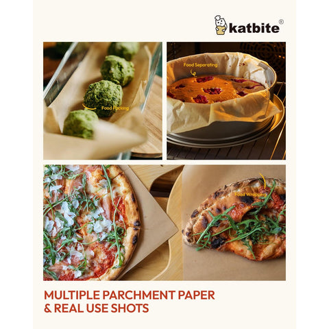 - 👍NON-STICK & EASY TO CLEAN: Do you love baking but hate cleaning up? This nonstick parchment paper sheet makes it possible and even works great! Food can be easily slide off from the baking tray and you just need to remove the baking paper and throw it away after baking. Even wet dough won't stick to it. Let Katbite be your good kitchen helper!