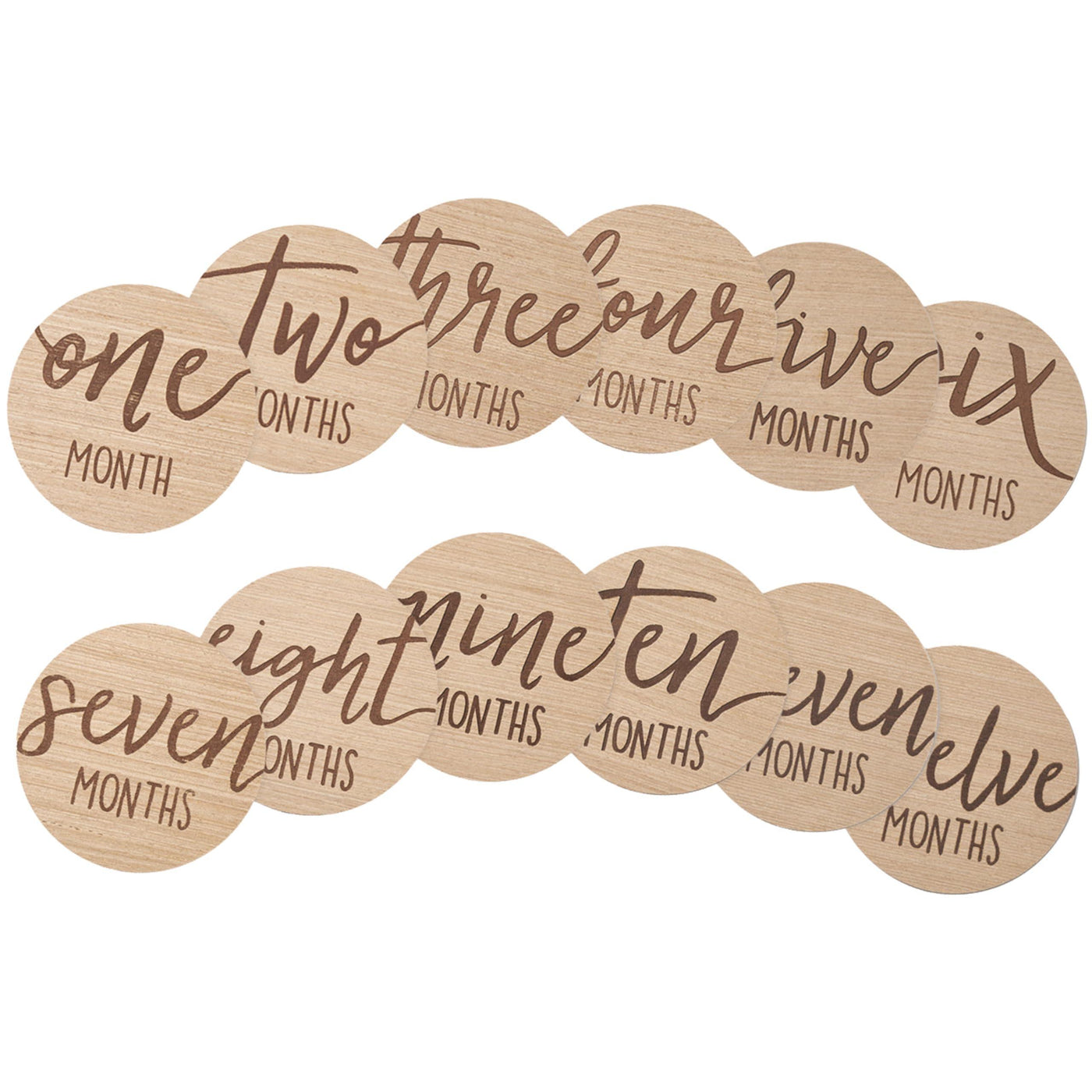 Kate & Milo Baby Monthly Milestone Marker Discs - Classic Cursive Script Wooden Discs with Reversible Photo Props for Baby Announcement and Milestones, Gender-Neutral Gift for Newborn Boy and Girl