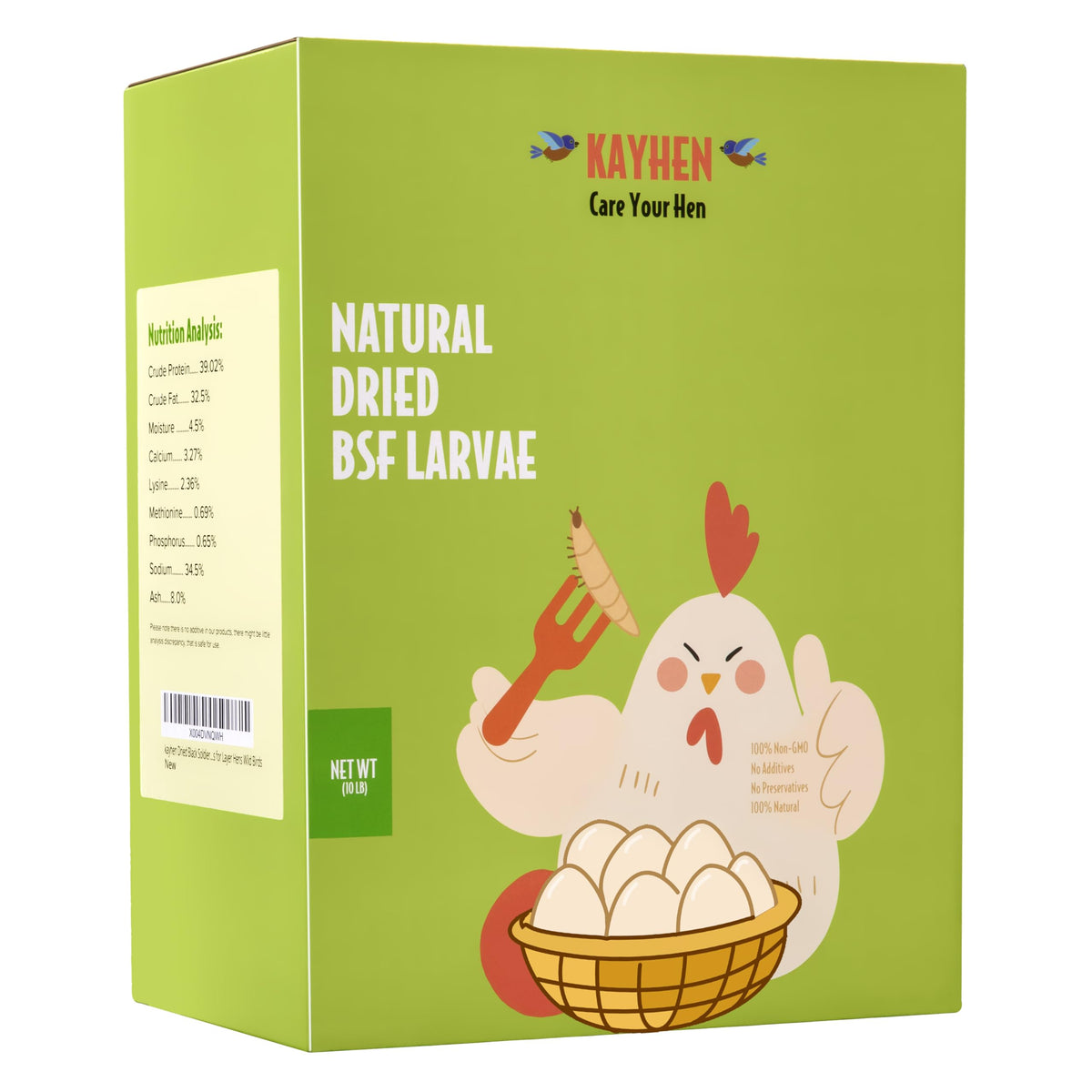 KAYHEN Dried Black Soldier Fly Larvae 10LB Non-GMO BSF Larvae for Chickens More Calcium Than Mealworms High-Protein Chickens Treats for Layer Hens Wild Birds Ducks Sale