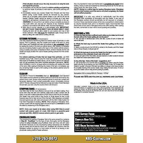 Details: Gold Standard Gas Tank Sealer8-oz.Coats up to a 5 Gallon Tank Note: Gold Standard Tank Sealer is NOT designed to be used by itself, but is designed to be used in conjunction with KBS Klean and RustBlast