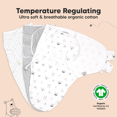 - Breathable & Temperature-regulating - Our Soothe Swaddle for newborns is made with ultra-soft Organic Cotton (GOTS Certified by CU 1042833), it is lightweight and highly breathable which makes it a highly-raved newborn swaddle sack for all seasons.