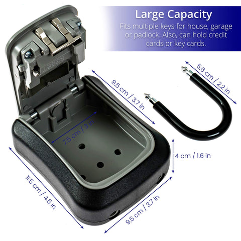 - Large Storage Capacity: At least 5 house or car keys can be locked in this mountable box as well as fob, credit cards and USB thumb drives. It is suitable for outdoor and indoor use and can be used for emergency access or family, pet sitters and friends keyless entry to apartment, garage, garden, classroom, factory, company, store, college, dorm, vacation home, and etc.
