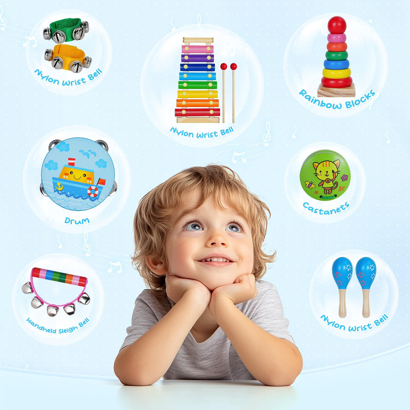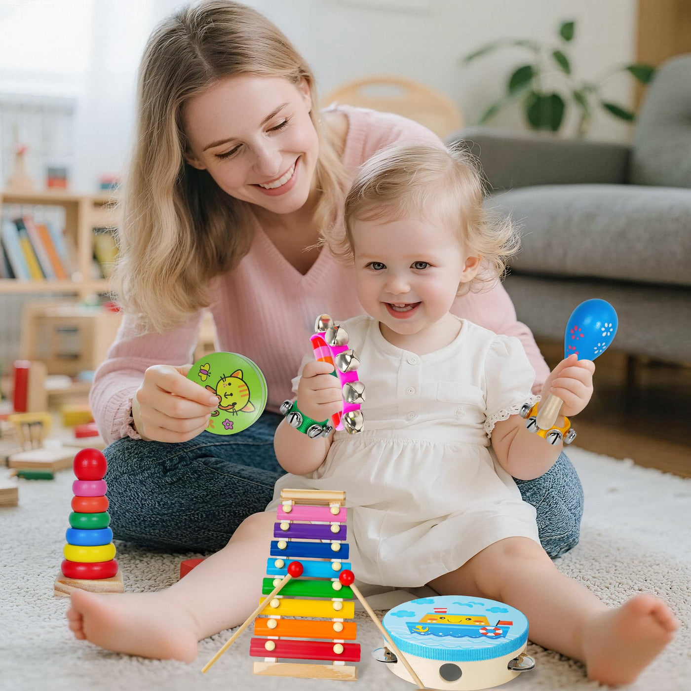- Perfect Kids Musical Instruments For Toddlers: These Toddler Musical Instruments is very colorful,Perfect baby musical toys for kids' birthday Gifts,baby Christmas gifts,girl gifts,boy gifts. Cute,colorful set of musical instruments toys expose mini-musician to different tones,volume,and rhythm,which is attractive Christmas gifts to year old kids.11-piece musical instruments for kids to get children moving,grooving,and feeling the beat.Cute and perfect kid and baby instruments toys Gifts
