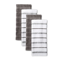KitchenAid Albany Kitchen Towel 4-Pack Set, Charcoal Grey/White, 16"x26"