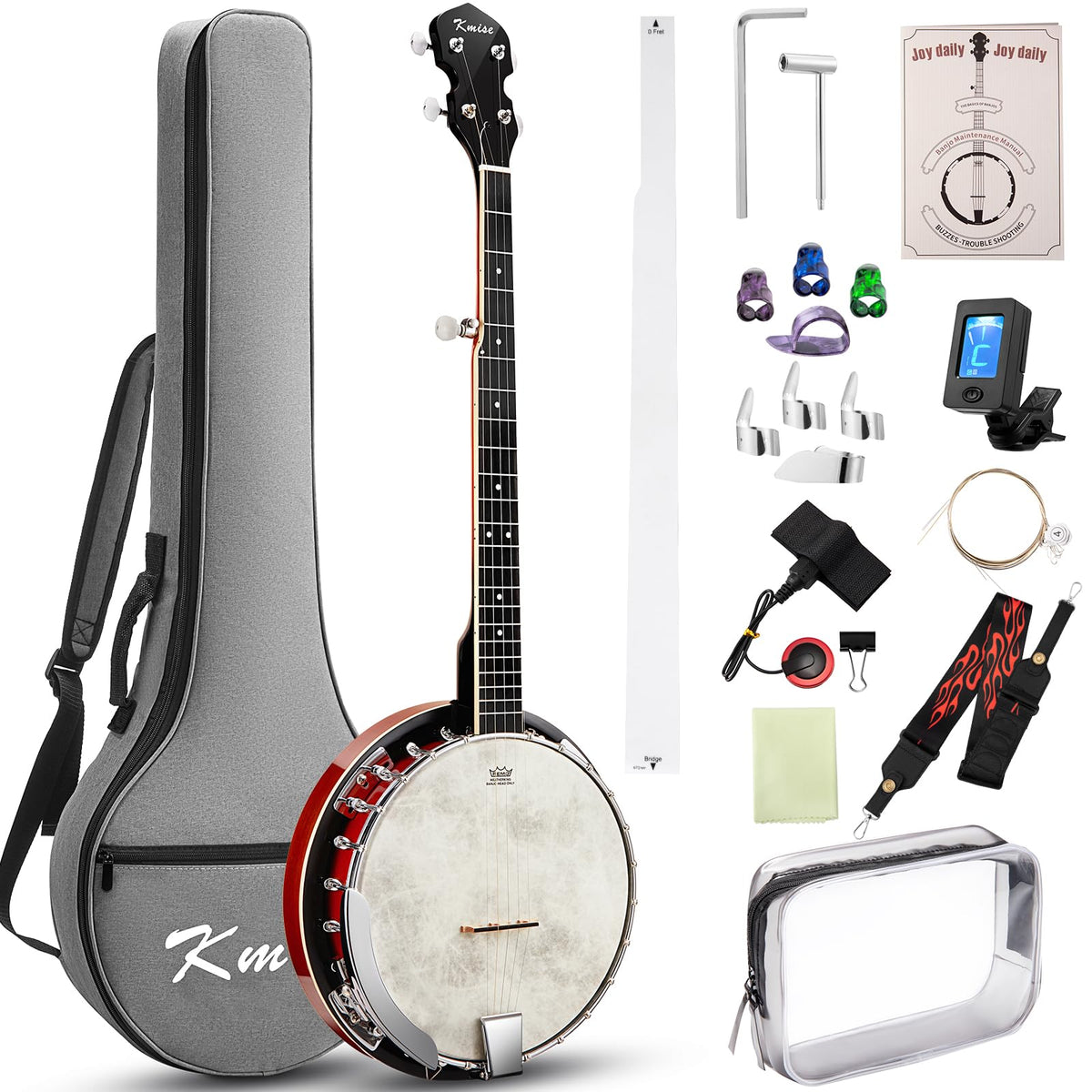 Kmise Banjo, 5 String Banjos with Remo Head Full Size 38 Inch Closed Back with Removable Resonator, Strings Pack, Finger Picks, Strap, Case, Tuner Set Accessories for Starter Adults Beginner Gift